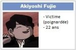 Fujie s'est suicidé à cause de la réaction de Yuko lorsqu'il nous a pris l'épaule. Fujie était le petit ami de Yoko, jusqu'à que son manager demande qu'il la quitte pour des raisons professionnelles. Fujie pensait, à cause de la réaction de Yuko, que Yoko ne voulait plus de revoir. Incapable de supporter cette pensée, il décida de mettre fin à ses jours, en inculpant de meurtre Yoko, ultime action de son esprit vengeur.